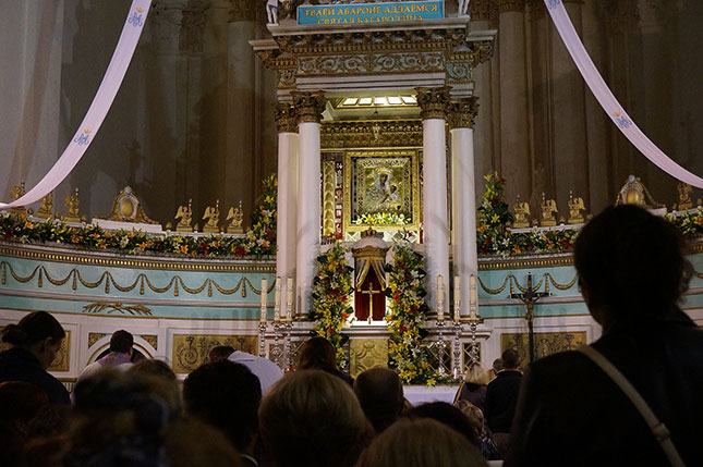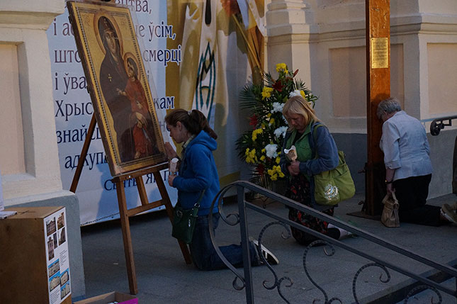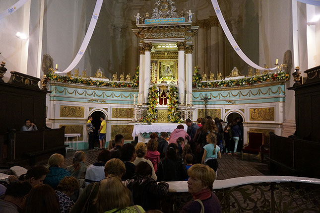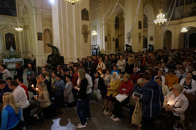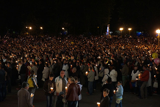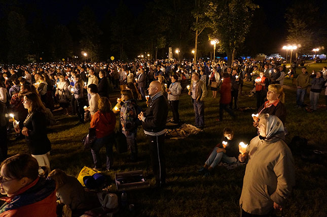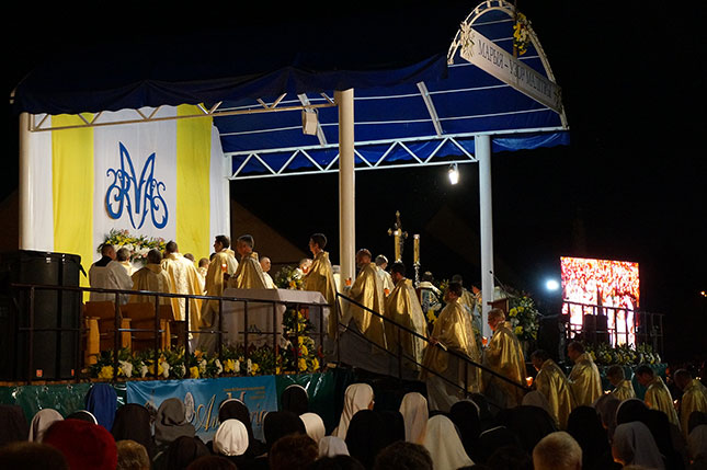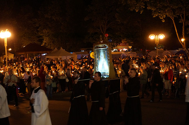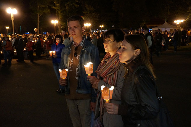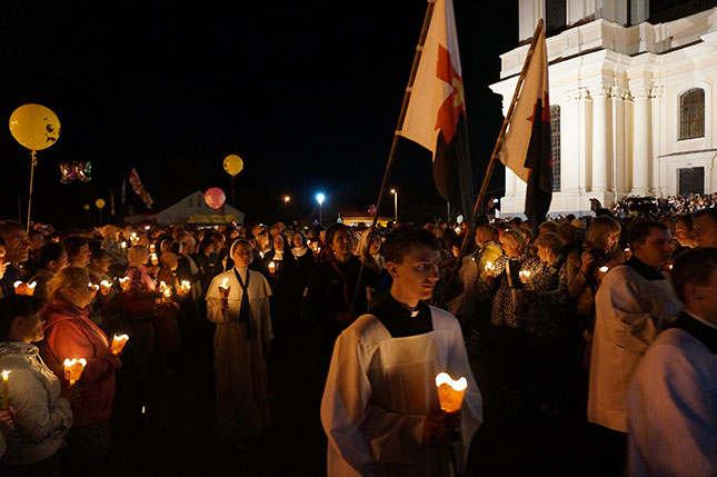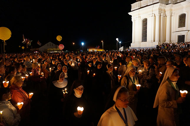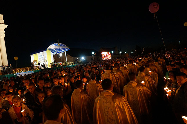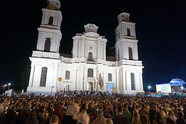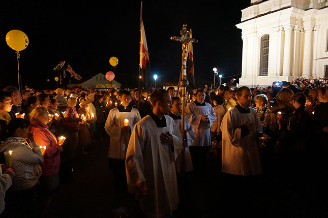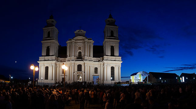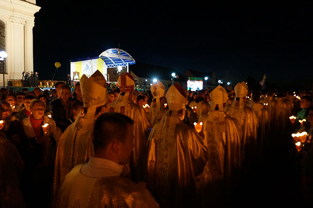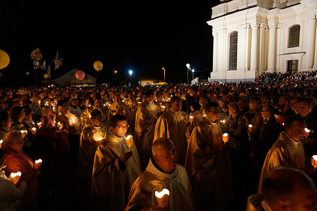 Фота з начной часткі урачыстасці, прысвечанай святу Маці Божай Будслаўскай.