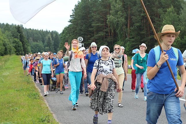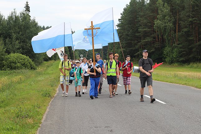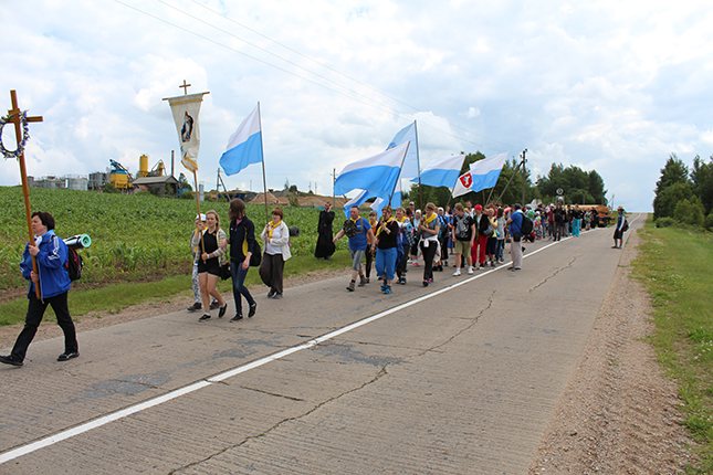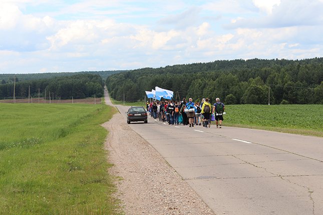 І вось раніца наступнага дня. Сустрэліся ў касцёле на ранішнюю імшу, памаліліся аб шчаслівай дарозе, падзякавалі тым, хто даў нам прытулак на гэтую ноч і рушылі ў шлях. Кожны дзень у пілігрымцы адбываецца канферэнцыя, увесь ён напоўнены вясёлымі гутаркамі, спевамі і, канешне ж, малітвай. Таму, тыя, хто збіраецца ўпершыню ў пілігрымку, не забудзьцеся ўзяць у свой заплечнік ружанец і малітоўнік “Ойча наш”. Дарэчы, пілігрыму для шчасця патрэбна няшмат: бутэлька з вадою, дажджавік, пачак пластыраў на свае мазалі, добры настрой ды інтэнцыя ці падзяка да Маці Божай Будслаўскай.