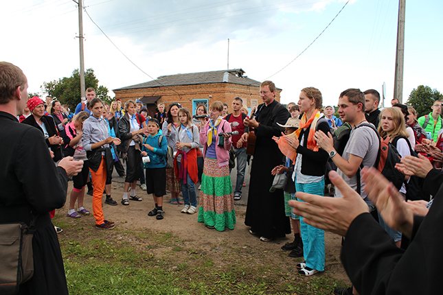 Вось, палова шляху ў мінулым. Засталося прайсці яшчэ да вёскі Даўгінава, а ў наступны дзень ўжо да нашай канчатковай мэты – Будслава. Зноў шлях. Трыццаць кілометраў “з гакам” чакаюць нас сёння. Дарэчы, “з гакам” – гэта асаблівая пілігрымковая адзінка вымярэння, велічыню якой ніколі агучваюць, бо яе ніхто дакладна не ведае. Таму, калі яе ўзгадваюць, ўсе толькі смяюцца і спадзяюцца, што “гак” будзе меншы. У Даўгінава на начлег спыняецца яшчэ некалькі пілігрымак, акрамя нашай. Таму месца ў дамах хапае не для ўсіх, і штогод нас гасцінна прымае мясцовы клуб, дзе мы можам спачыць на мяккай (пасля трох дзён дарогі) падлозе.