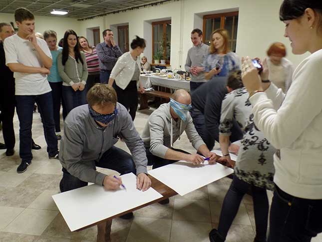 Па-трэцяе, абавязковай часткай уік-энда з’яўляецца вясёлы вечар. Вось і гэтым разам ён цалкам апраўдаў сваю назву, бо весела было проста неверагодна! Прысутным прыйшлося па задумцы аніматараў і ўзгадаць алфавіт, і патрэніраваць сваю памяць, гуляючы ў “сапсаваны тэлефон”, і стаць на некалькі хвілін сапраўднымі артыстамі, рыхтуючы “кліп” на песню, і спрытна патанчыць з партнёрам, а не са… швабрай, і “выдаць” свае думкі, якія “цудоўным” чынам супадалі з фразамі з вядомых кінафільмаў і песняў, і шмат чаго іншага.