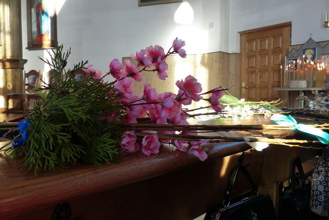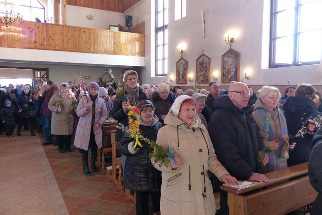 На пачатку літургіі Пальмовай нядзелі чытаецца Евангелле пра трыумфальны ўваход Езуса Хрыста ў Ерузалем, пасля чаго святар асвячае галінкі вербаў і пальмаў, прынесеныя вернікамі, а потым адбываецца ўрачыстая працэсія. Пазней асвячоныя галінкі спаляць, а попелам, які ад іх застанецца, будуць пасыпаны галовы вернікаў у Папяльцовую сераду наступнага года.