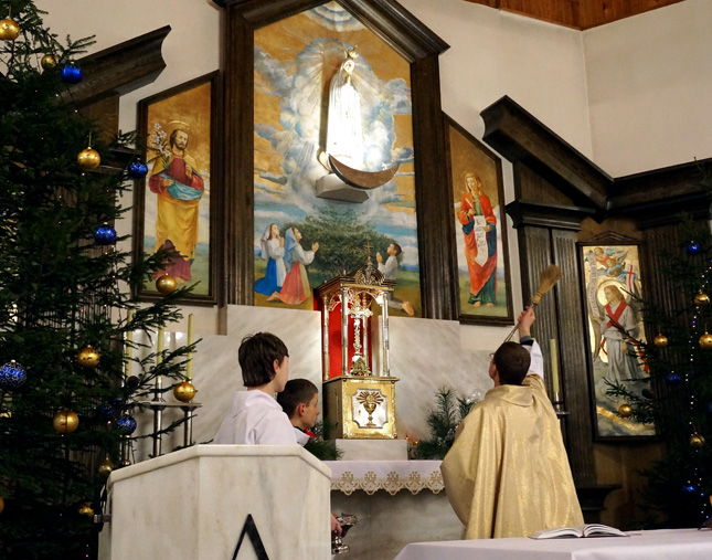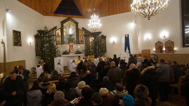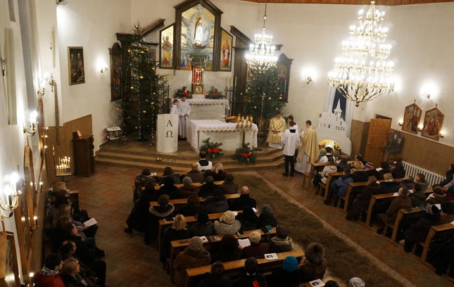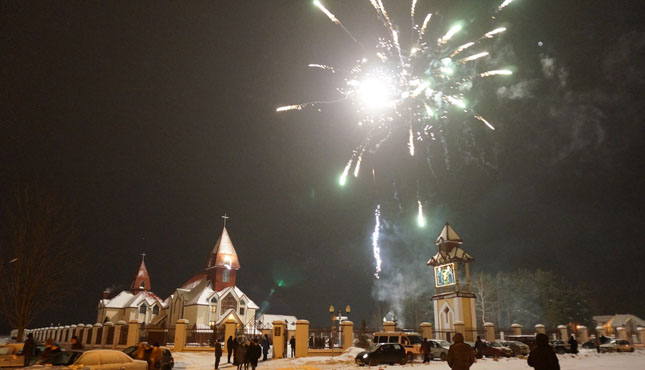 ў жодзінскім касцёле пачалося апоўначы. У храме гараць толькі невялікія ліхтары...Па насланым сене уваходзіць працэсія святароў і міністрантаў, якія пад гукі аргана і спеў хора нясуць сімвалічнае немаўля...Так пачынаецца святкаванне Божага Нараджэння.