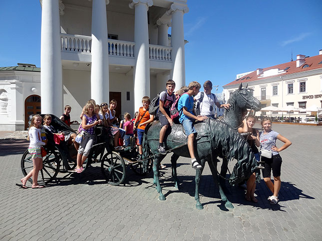 І вось гэты цудоўны дзень настаў! Мы едзем у Мінск! Спачатку мы наведалі Чырвоны касцёл Сымона і Алены, а потым Катэдру - галоўны касцёл Беларусі. Мы гулялі пешшу па горадзе, убачылі прыгожы фантан каля тэатра оперы і балета. У выніку ўсе засталіся задаволеныя, а хлопцы яшчэ і мокрыя да ніткі (вельмі блізка пабылі каля фантана). Потым мы пайшлі ў парк Горкага, дзе нас чакалі атракцыёны. Асабліва ўразіла нас "Кола Агляду". З вышыні птушынага палёту мы ўбачылі Мінск як на далоні. Наступным нашым прыпынкам была Нацыянальная бібліятэка Беларусі. Акрамя таго, што мы наведалі аглядную пляцоўку, нас таксама ўразіла фотавыстава ў памяшканні бібліятэкі. Стомленых, але задаволеных, нас зноў чакаў футбол. Сёння дзяўчаты паказалі свой найлепшы вынік з лікам 5:5.