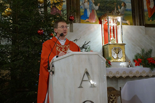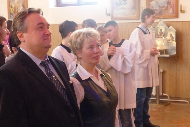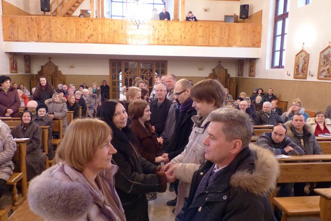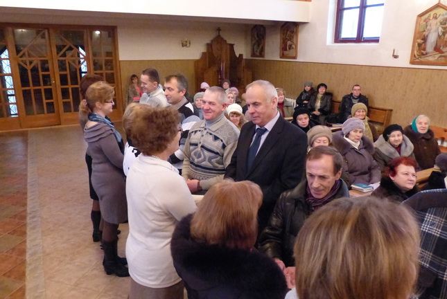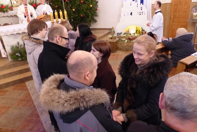 На наступны дзень, у дзень Святой Сям’і - Езуса, Марыі і Юзафа, на імшы сужэнцы аднаўлялі свае абеты, абвешчаныя падчас вянчання. Глядзелася гэта вельмі кранальна. Акрамя прыгожага цэрэманіялу, гэта яшчэ і вельмі важна – нагадаць адзін аднаму тыя словы, якія прамаўлялі падчас адной з самых запамінальных падзеяў у сваім жыцці. У сваёй казані ксёндз Міхаіл зазначыў, што Папа Францішак вельмі заклапочаны станам сям’і, адносінамі паміж мужам і жонкай, роляй сям’і ў сучасным грамадстве, а галоўнае – тым, якое месца займае Бог у сёняшняй сям’і. “Папа Францішак заклікае сужэнцаў не толькі да павагі, пашаны, вернасці, але і да пяшчоты паміж мужам і жонкай, да сапраўднага кахання. Такім чынам Папа звяртае асаблівую ўвагу на цёплыя адносіны паміж мужам і жонкай і задаецца пытаннем, чаму гэтыя вельмі важныя пачуцці знікаюць з сем’яў з цягам часу. Здаецца, Святы Айцец гаворыць пра банальныя рэчы, але ж ці ёсць яны у нашых сем’ях?”…