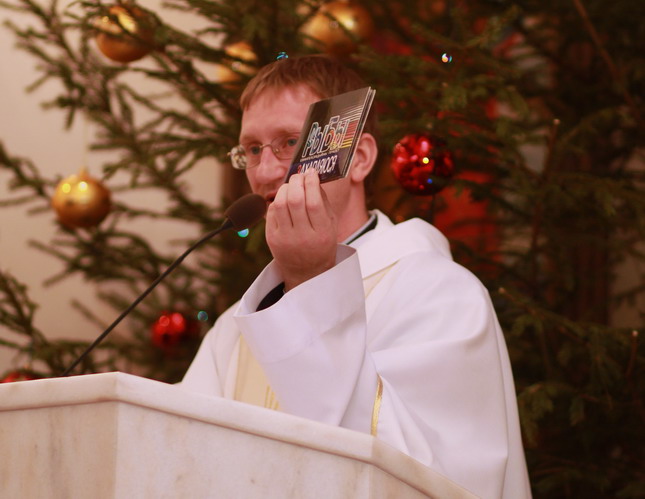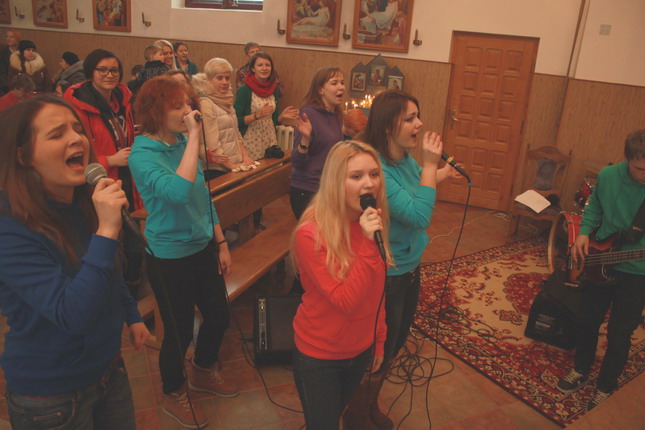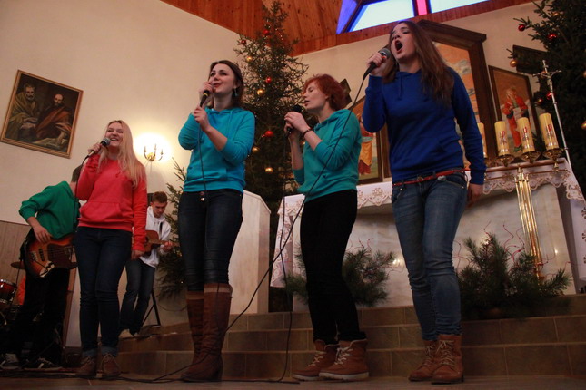 Можа, камусьці сапраўды было нязвыкла шумна і крыху дзіўна, бо мы звычайна чуем у касцёле арган і гітару. Гэтым жа разам гучала такая сапраўдная сучасная музыка з гітарнымі рыфамі, выразным барабанным рытмам і вельмі прыгожымі галасамі салістак евангелізацыйнага праекта “Рыбы”, чыя першая кружэлка з назвай “Захапляюся” была прэзентавана менавіта ў Касцёле Фацімскай Божай Маці ў Жодзіне. (Шкада, дарэчы, што саксафаніст гурта не змог прыехаць у Жодзіна, бо саксафонныя партыі запісаных на СD песень гучалі б у касцёле асабліва пранікнёна і ўзнёсла).