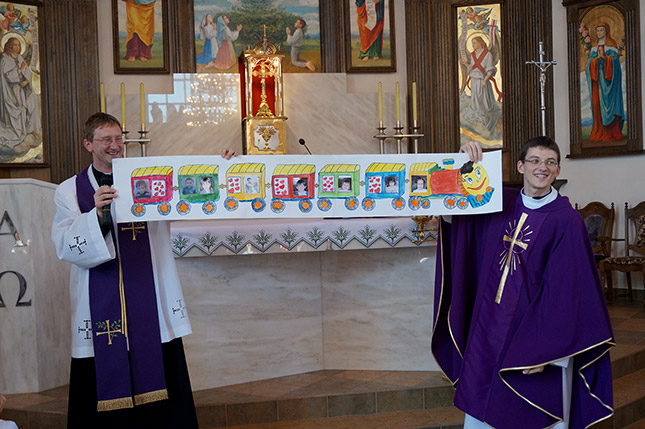 Пасля сваёй прыміцыйнай імшы і шматлікіх віншаванняў ад дзяцей і моладзі парафіі, усіх парафіянаў ксёндз Канстанцін сказаў: “Самы вялікі падарунак для мяне – гэта вы, дарагія парафіяне, тое, што вас так многа сёння ў касцёле. Я ўжо шмат разоў казаў, што, скончыўшы семінарыю, стаў дыяканам, але святаром мяне зрабіла менавіта Жодзіна, ваша парафія. Вялікі дзякуй Богу за тое, што ён даў мне магчымасць быць для вас Ягоным інструментам. Цешуся, што мая мама таксама сёння тут з намі, яна можа паглядзець на маю новую сям’ю. Дзякую пробашчу Міхаілу, каторы быў першым марыянінам, што я сустрэў на сваім шляху і каторы прывёў мяне да братоў-марыянаў, сёстрам-эўхарысткам, усім, хто рыхтаваў гэтае свята, і ўсім, хто сёння тут. Паверце, кожнага з вас я нашу ў сваім сэрцы і абяцаю маліцца за кожнага з вас, за вашыя сем’і. Я адкрыты для вас і заўсёды вас чакаю, каб мы разам ішлі да Бога”.