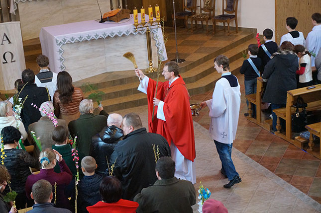 Звычай асвячэння пальмовых галін з’явіўся ў Касцёле ў ХІ ст. У нашай краіне іх замяняюць вербы. Пасля асвячэння іх утыкаюць за крыжы і абразы, каб сцерагчы дом ад няшчасцяў і мець Божае благаслаўленне. Раней галінкі ўтыкаліся таксама ў полі, каб Бог сцярог пасевы ад граду, сушы, вялікіх дажджоў.