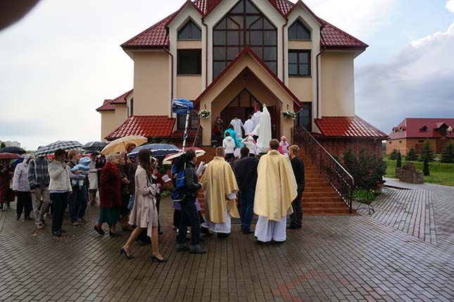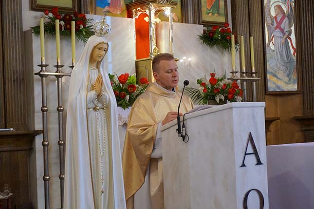 Падобныя здарэнні напэўна былі і ў вашым жыцці. Мы бачым, што любоў нашай Маці і нашага Айца праяўляецца не толькі ў такі цудоўны спосаб, як у Фаціме. Я ўпэўнены, што вы таксама калісьці адчувалі ласку Божую на сабе. Таму няхай сёняшняе парафіяльнае свята, няхай гэта мацярынскае цяпло, якое сыходзіць з гэтага прыгожага алтара, якое адчуваецца тут сярод нас, атуляе нашы душы і сэрцы і кажа нам, як калісьці ў Фаціме казала Божая Маці: любіце адзін аднаго, будзьце ўразумелыя адзін да аднаго, цярплівыя, добрыя. Не спакушайцеся чэрствасцю чалавечай душы, выкарыстаннем, гвалтам, зайздрасцю, амбіцыямі, ганарыстасцю. Будзьце вышэйшымі за гэта ўсё і вы сапраўды парадуеце нябеснага Айца і Мацярынскае сэрца. І так глыбока адчуеце, што там дзесьці высока ў небе наш любячы Айцец і любячая Маці скажуць: сынок (дачурка), дзякую табе і ганаруся табой. Будзь мужны і вер мне.